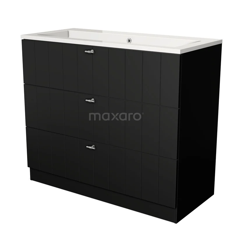 Modulo Waschtische | 100 cm Matt Schwarz Lamelle front Mineralguss 3 stehende Schubladen