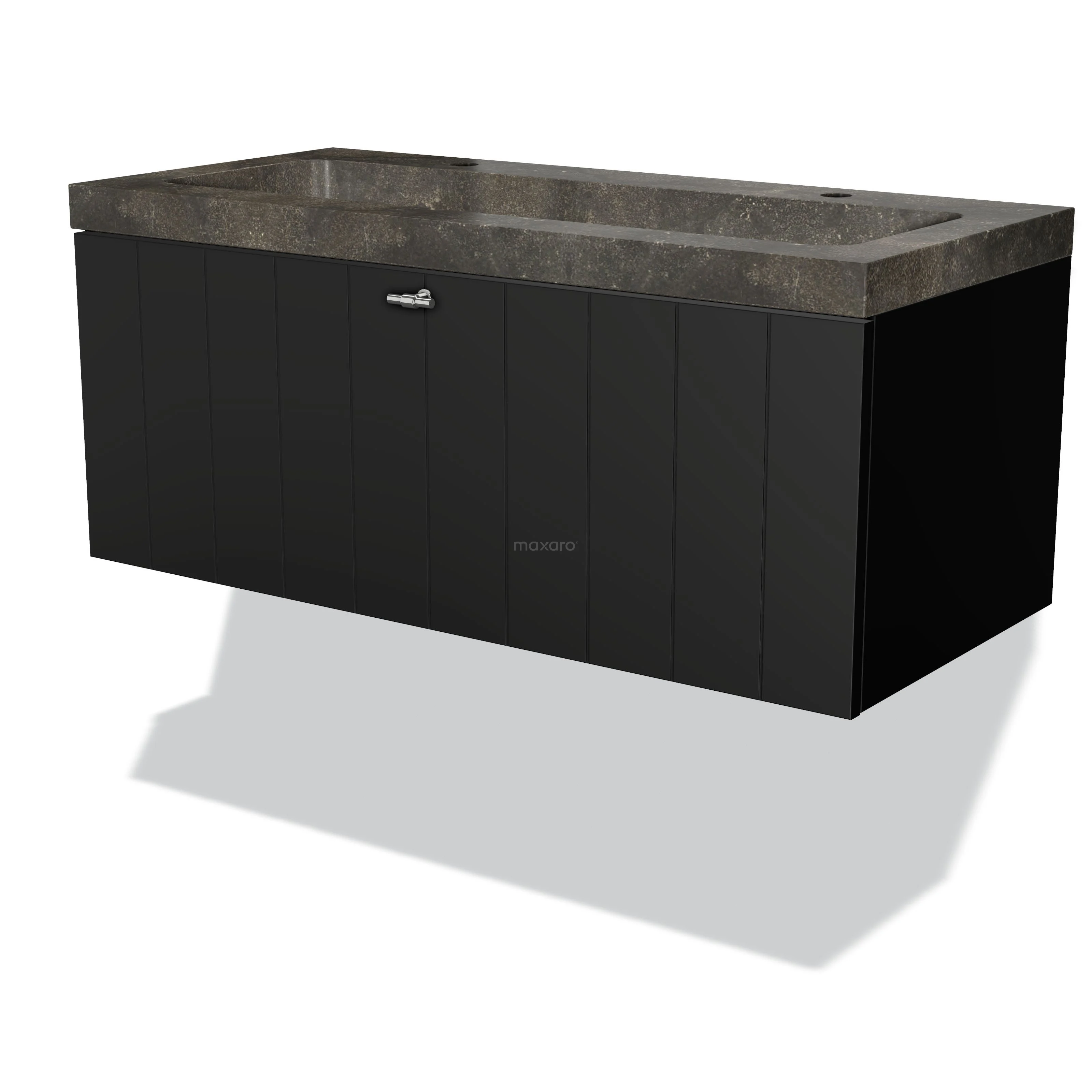 Modulo Waschtische | 100 cm Matt Schwarz Lamelle front Naturstein 1 Schublade