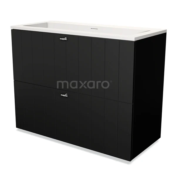 Modulo Waschtische | 100 cm Matt Schwarz Lamelle front Solid Surface 2 hohe Schubladen übereinanderliegend