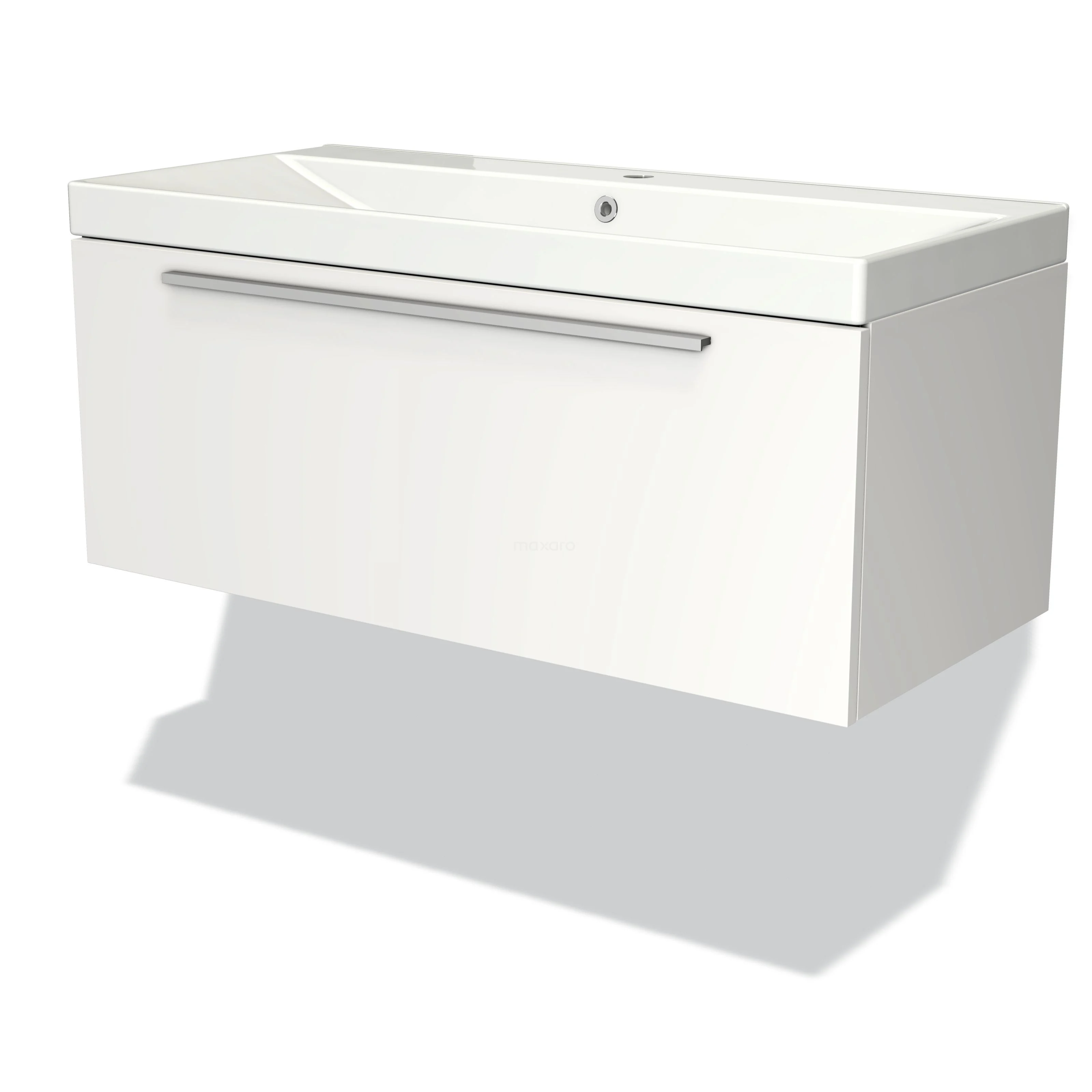 Modulo Waschtische | 100 cm Matt Weiß Flach front Keramik 1 Schublade