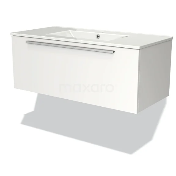 Modulo Waschtische | 100 cm Matt Weiß Flach front Keramik 1 Schublade