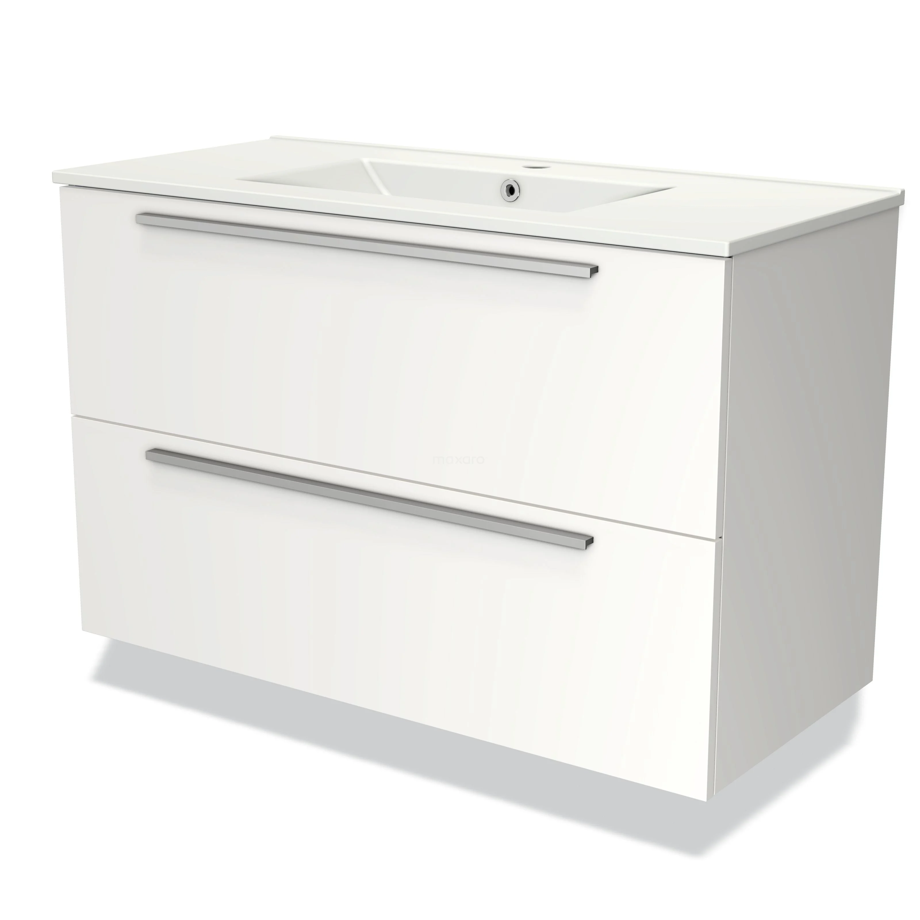 Modulo Waschtische | 100 cm Matt Weiß Flach front Keramik 2 übereinanderliegende Schubladen