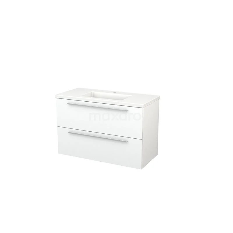 Modulo+ Waschtische | 100 cm Matt Weiß Flach front Keramik 2 übereinanderliegende Schubladen