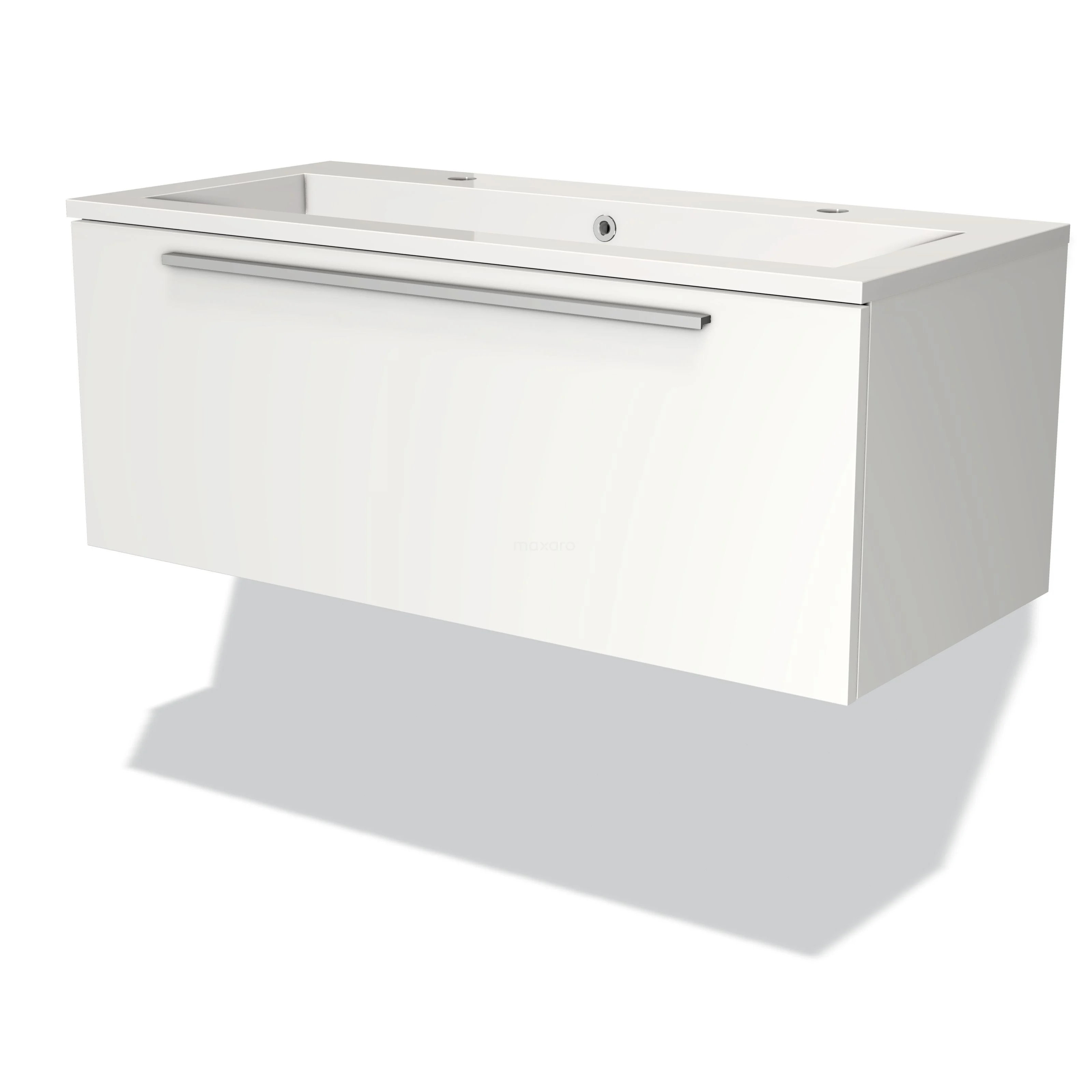 Modulo Waschtische | 100 cm Matt Weiß Flach front Mineralguss 1 Schublade