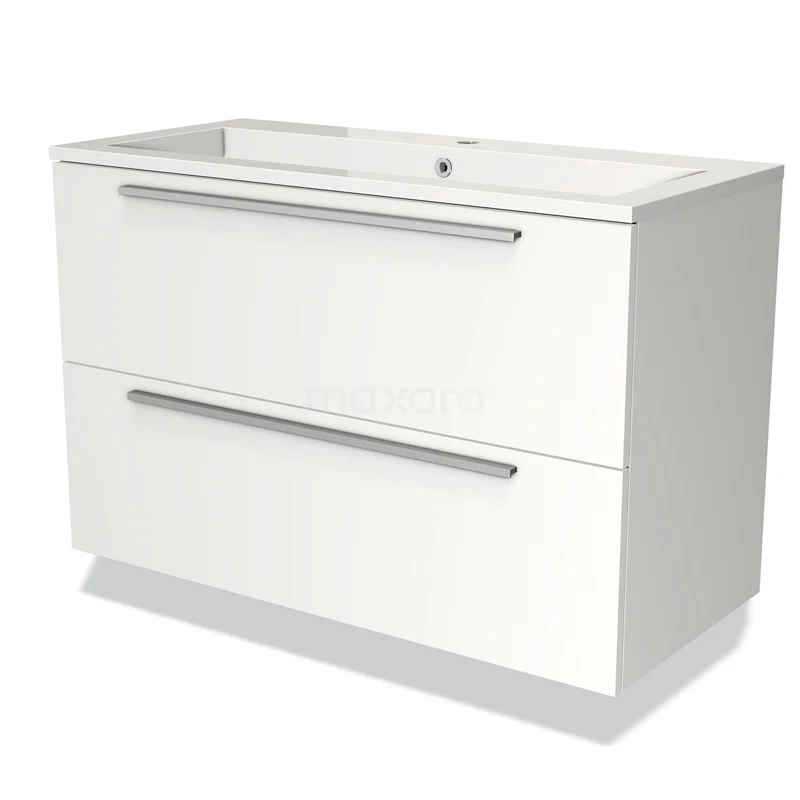 Modulo Waschtische | 100 cm Matt Weiß Flach front Mineralguss 2 übereinanderliegende Schubladen