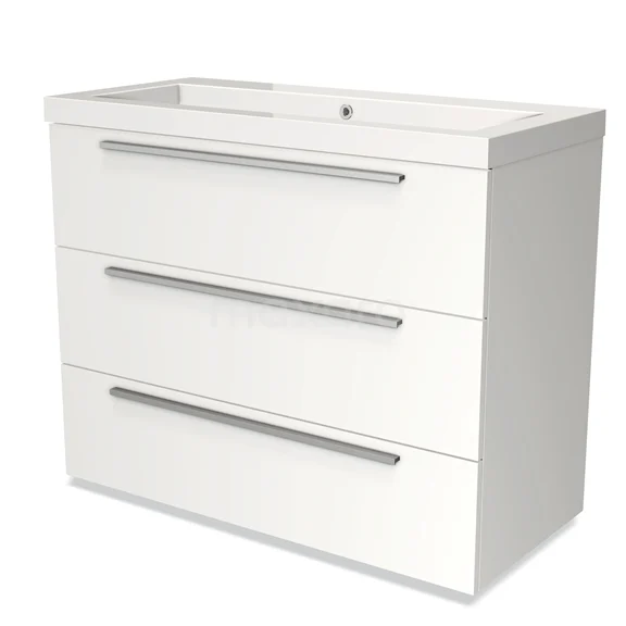 Modulo Waschtische | 100 cm Matt Weiß Flach front Mineralguss 3 Schubladen