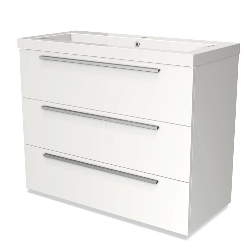 Modulo Waschtische | 100 cm Matt Weiß Flach front Mineralguss 3 Schubladen