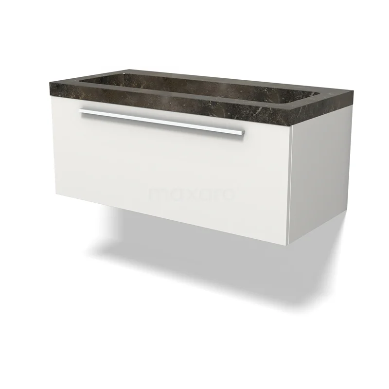 Modulo Waschtische | 100 cm Matt Weiß Flach front Naturstein 1 Schublade BMW11-04654