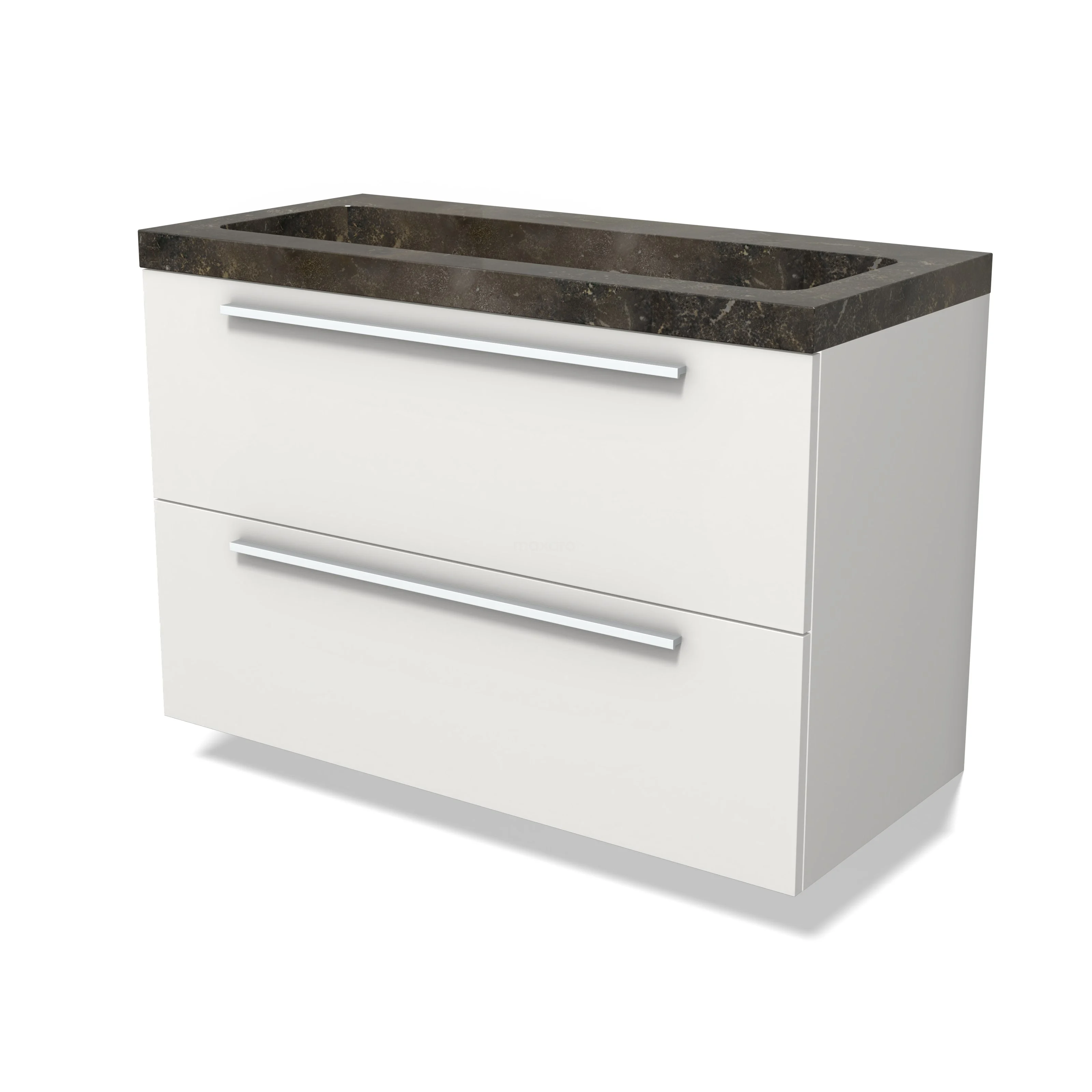 Modulo Waschtische | 100 cm Matt Weiß Flach front Naturstein 2 übereinanderliegende Schubladen
