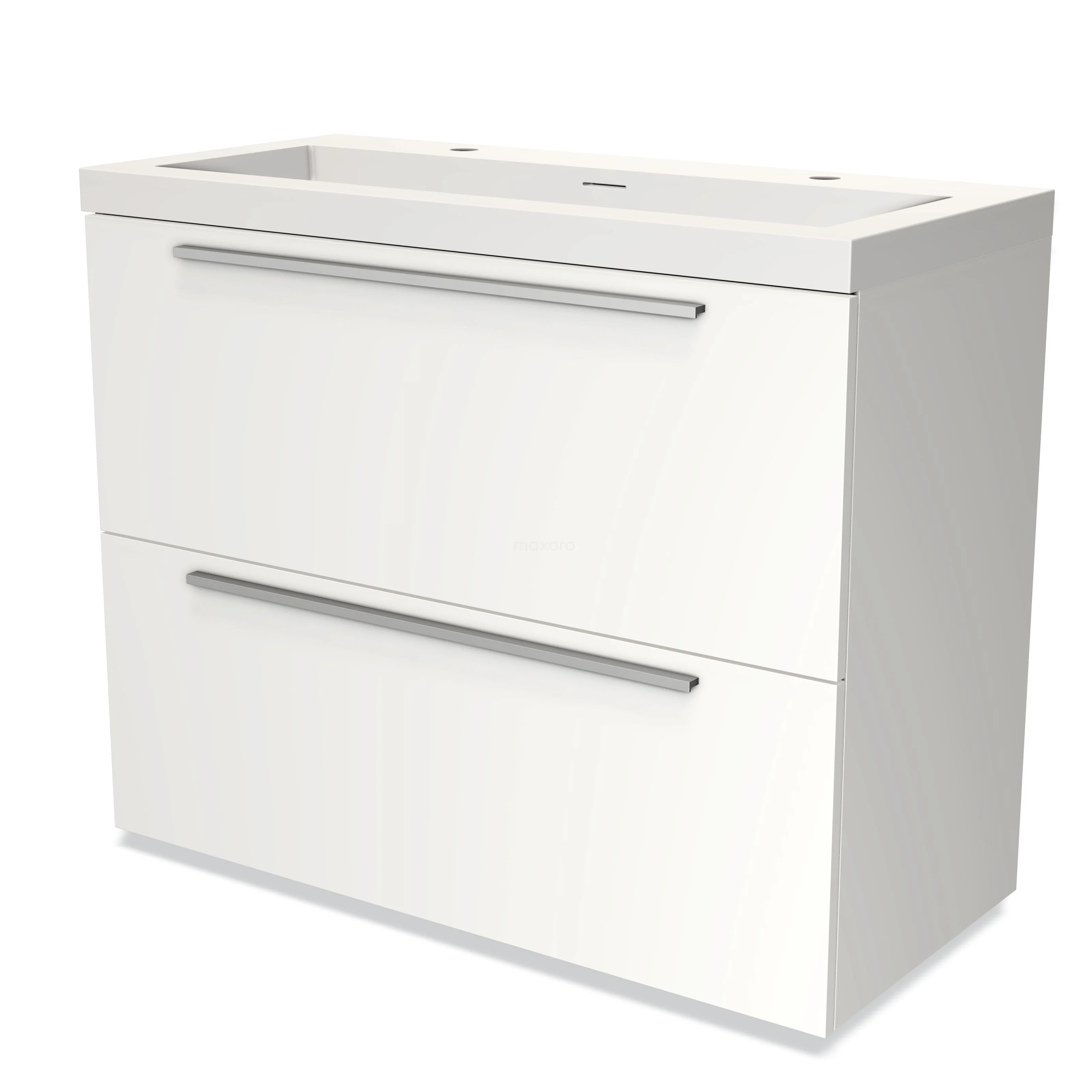 Modulo Waschtische | 100 cm Matt Weiß Flach front Solid Surface 2 hohe Schubladen übereinanderliegend