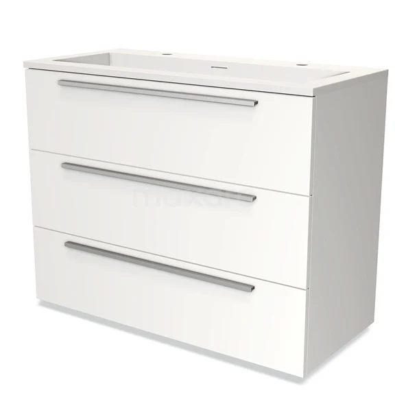 Modulo Waschtische | 100 cm Matt Weiß Flach front Solid Surface 3 Schubladen