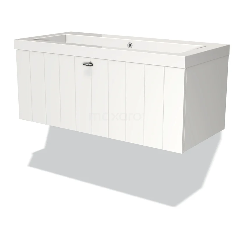 Modulo Waschtische | 100 cm Matt Weiß Lamelle front Mineralguss 1 Schublade