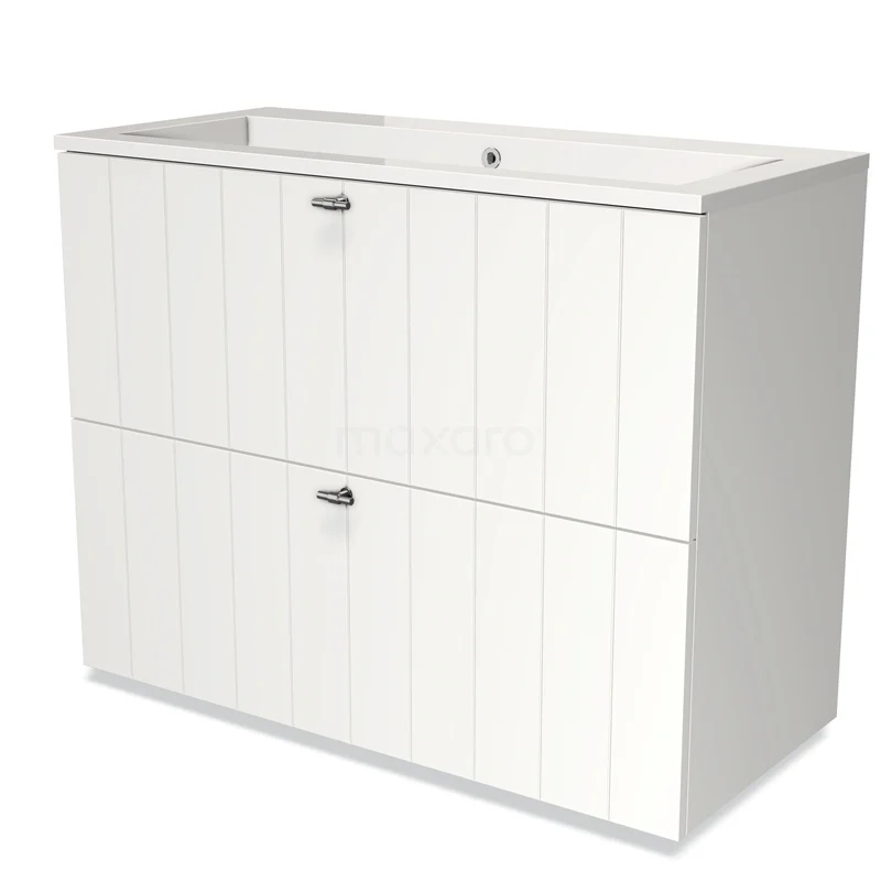 Modulo Waschtische | 100 cm Matt Weiß Lamelle front Mineralguss 2 hohe Schubladen übereinanderliegend