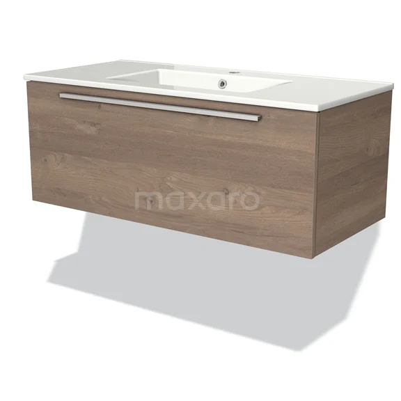 Modulo Waschtische | 100 cm Mittelbraune Eiche Flach front Keramik 1 Schublade