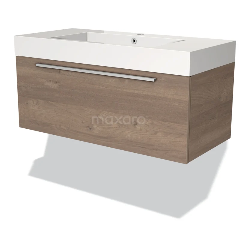 Modulo Waschtische | 100 cm Mittelbraune Eiche Flach front Mineralguss 1 Schublade