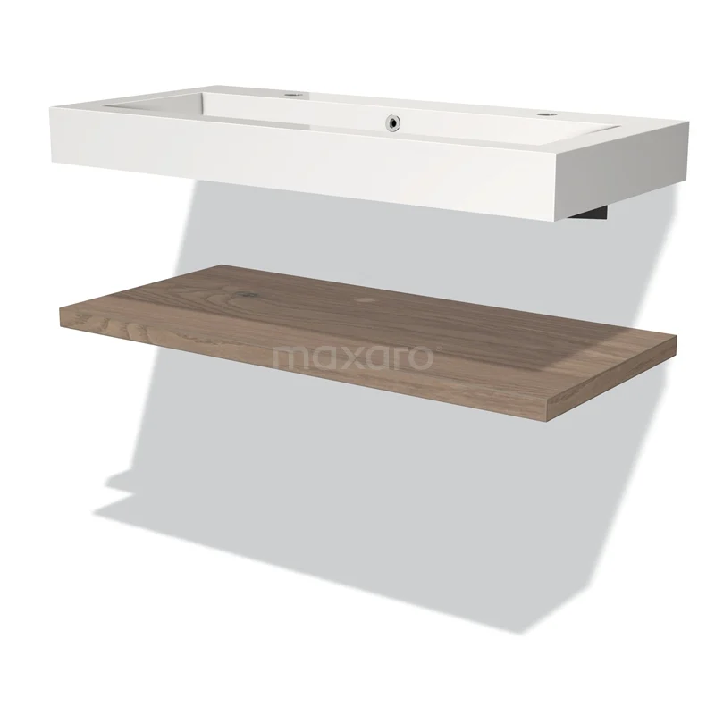 Modulo Waschtische | 100 cm Mittelbraune Eiche front Mineralguss Waschbecken mit Platte
