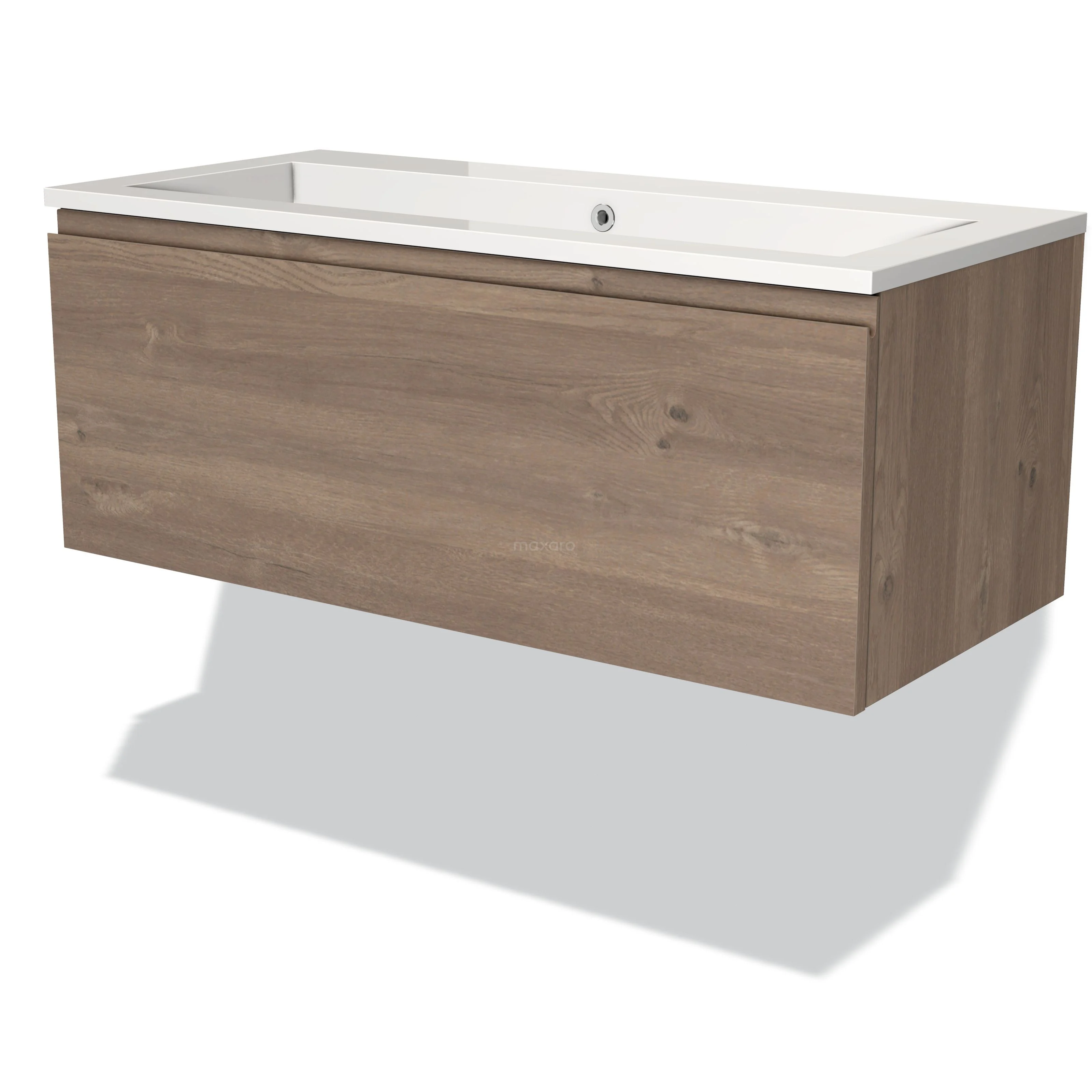 Modulo Waschtische | 100 cm Mittelbraune Eiche Grifflos front Mineralguss 1 Schublade