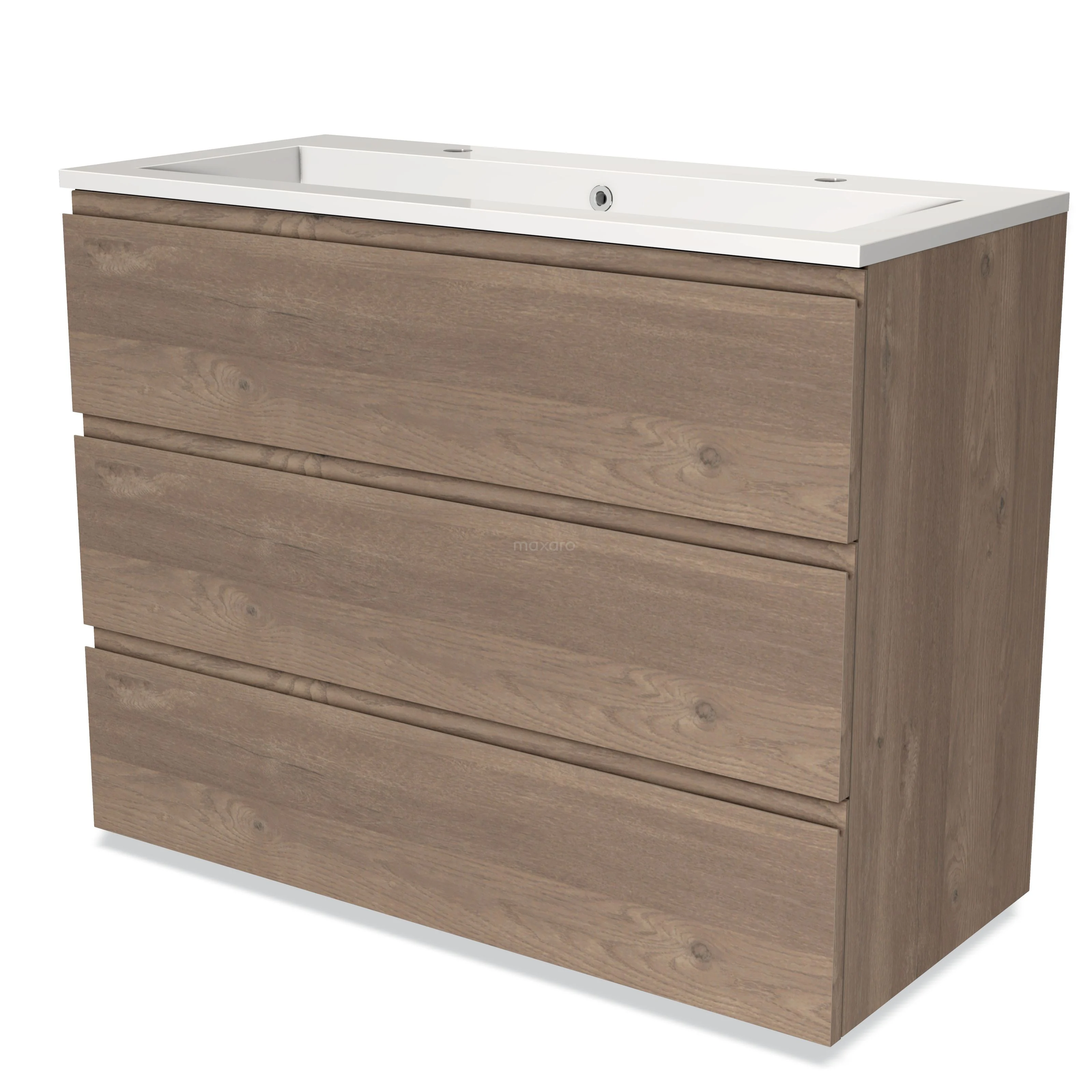 Modulo Waschtische | 100 cm Mittelbraune Eiche Grifflos front Mineralguss 3 Schubladen