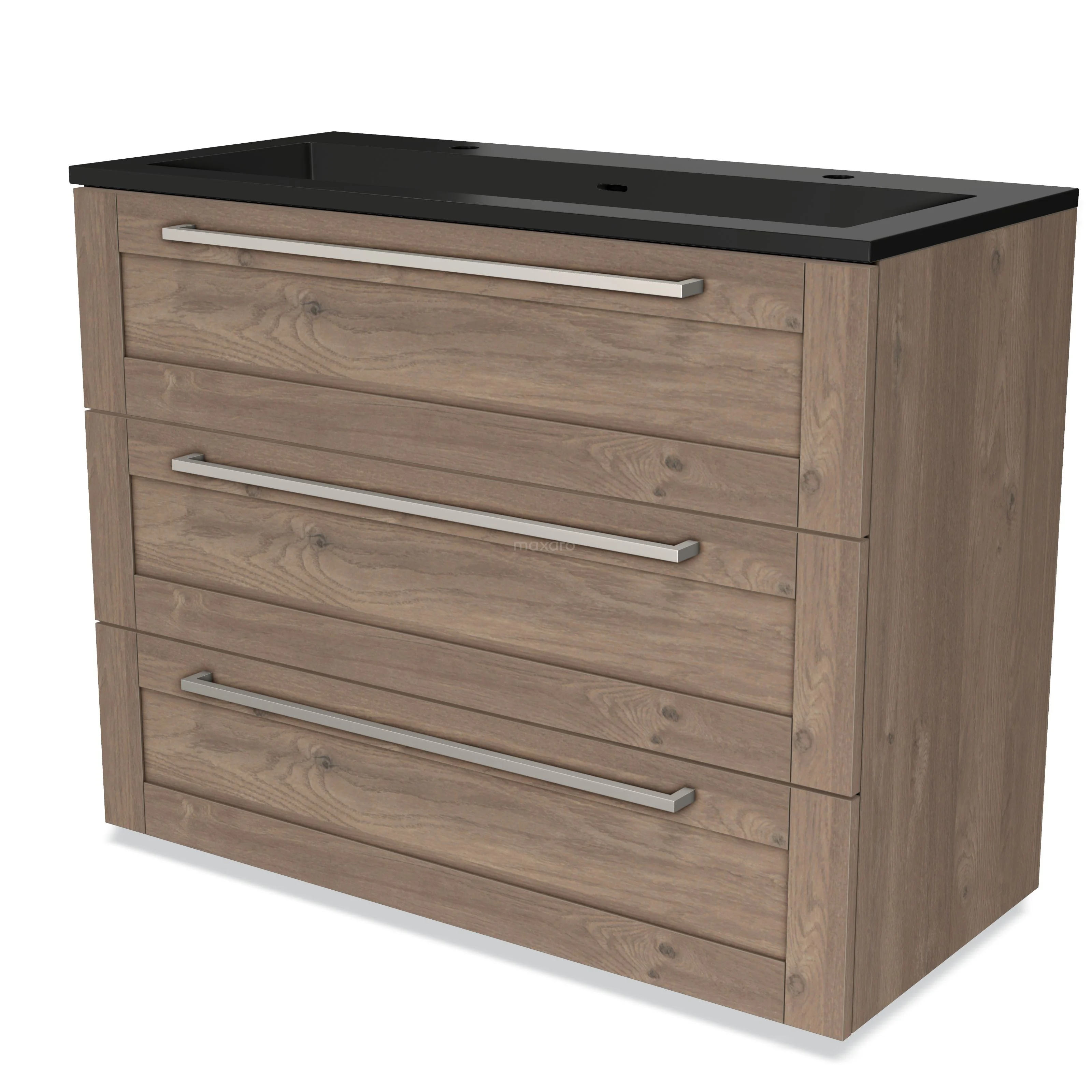 Modulo Waschtische | 100 cm Mittelbraune Eiche Rahmen front Quarz 3 Schubladen