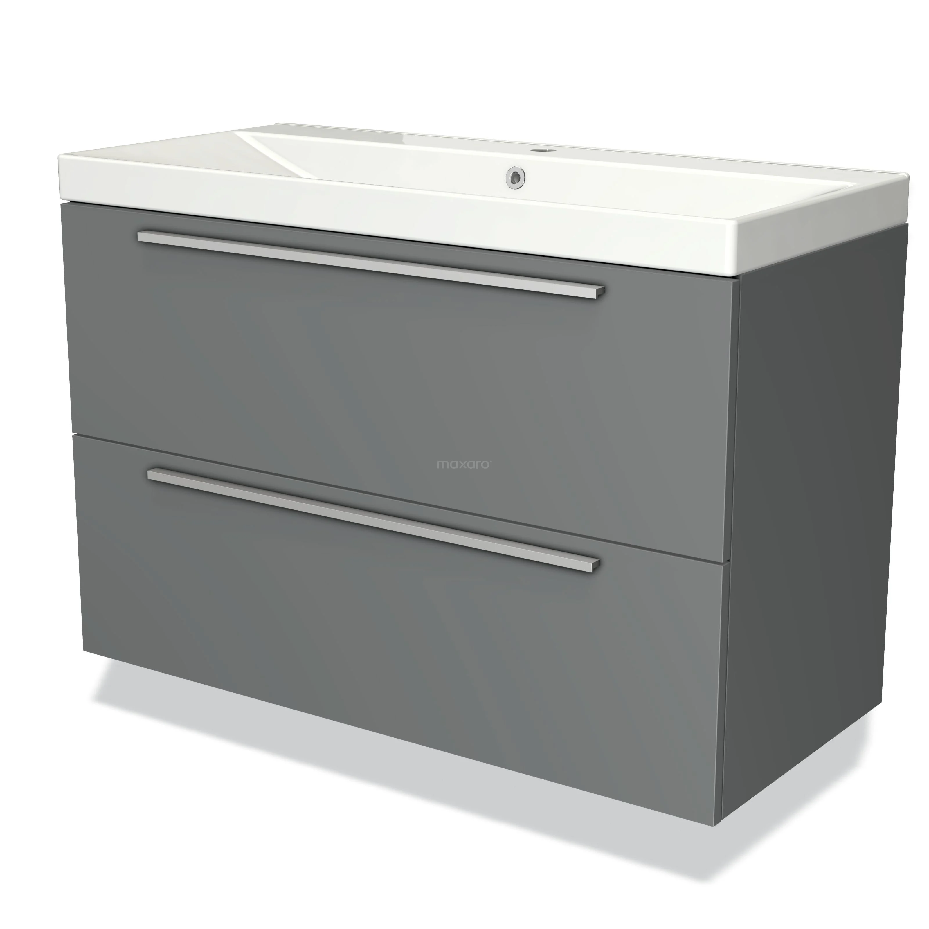 Modulo Waschtische | 100 cm Mittelgrau Flach front Keramik 2 übereinanderliegende Schubladen