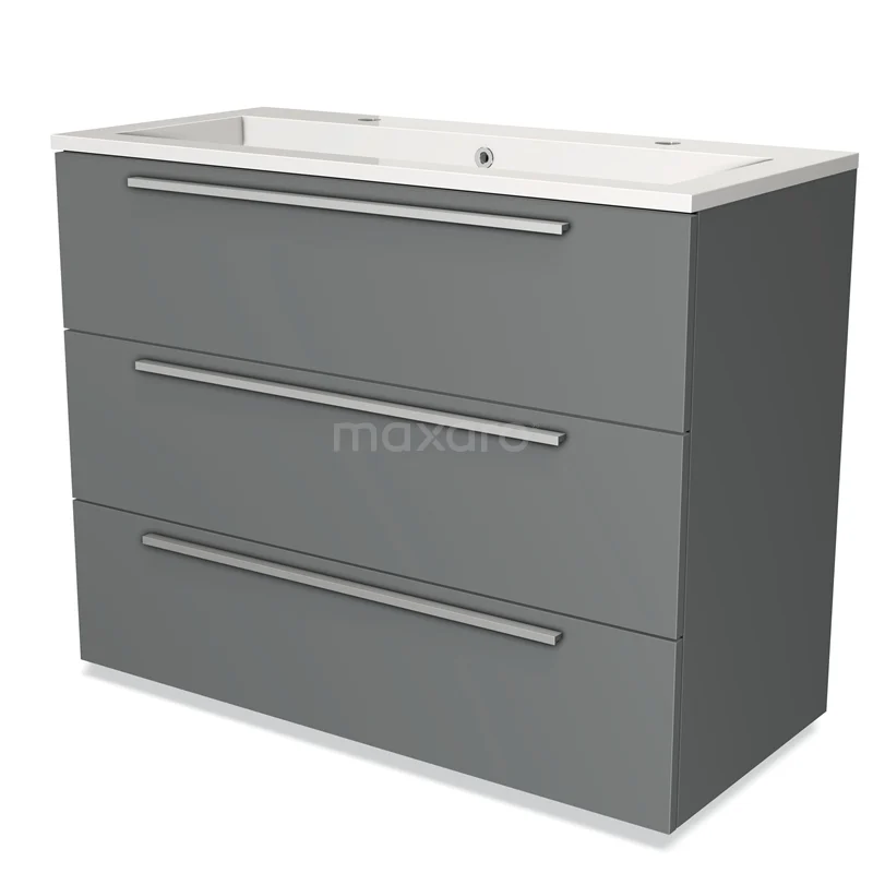 Modulo Waschtische | 100 cm Mittelgrau Flach front Mineralguss 3 Schubladen