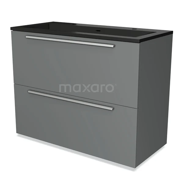 Modulo Waschtische | 100 cm Mittelgrau Flach front Quarz 2 hohe Schubladen übereinanderliegend