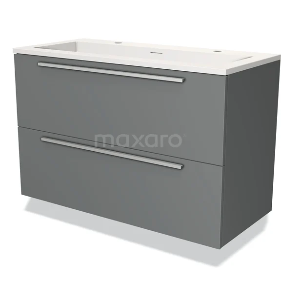 Modulo Waschtische | 100 cm Mittelgrau Flach front Solid Surface 2 übereinanderliegende Schubladen