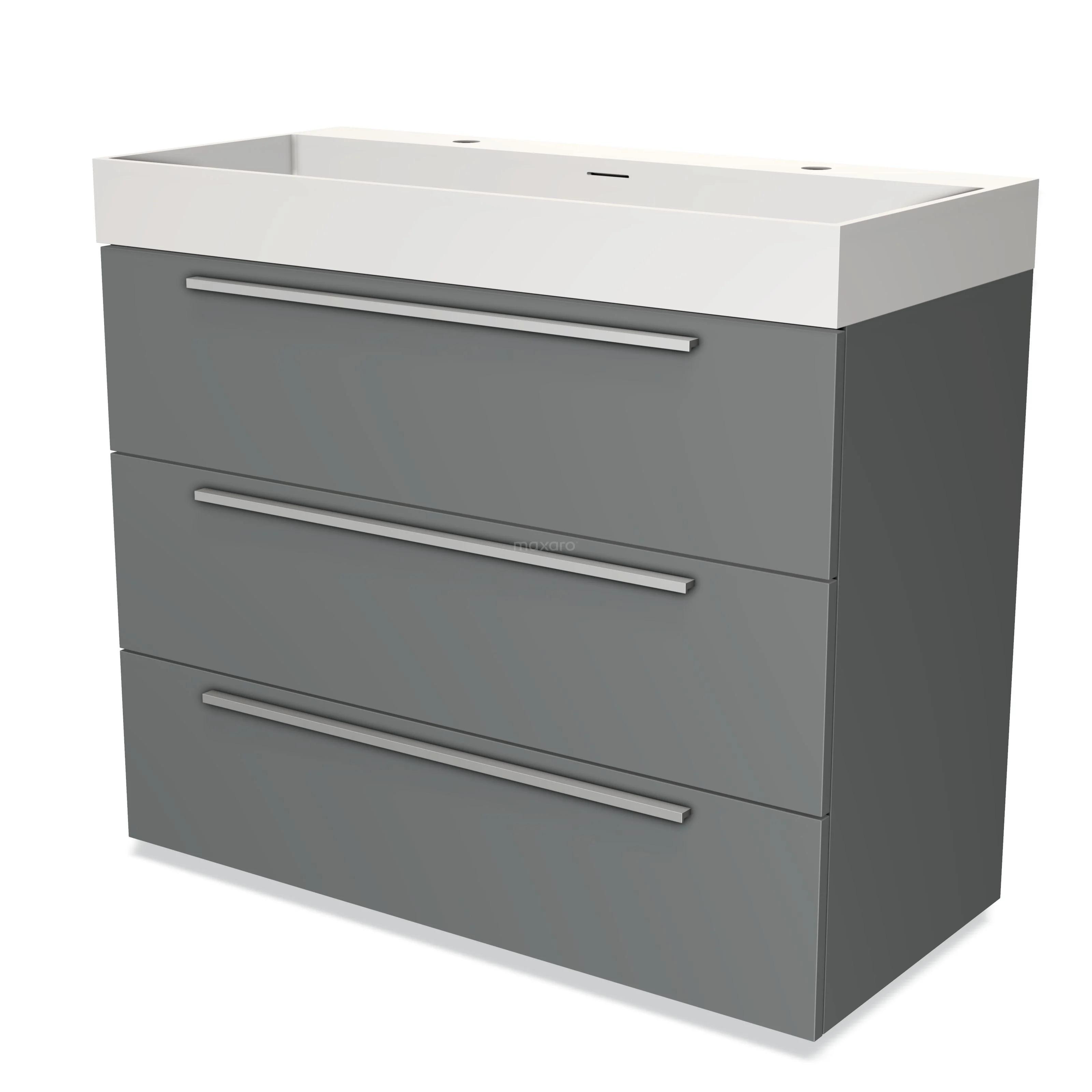 Modulo Waschtische | 100 cm Mittelgrau Flach front Solid Surface 3 Schubladen