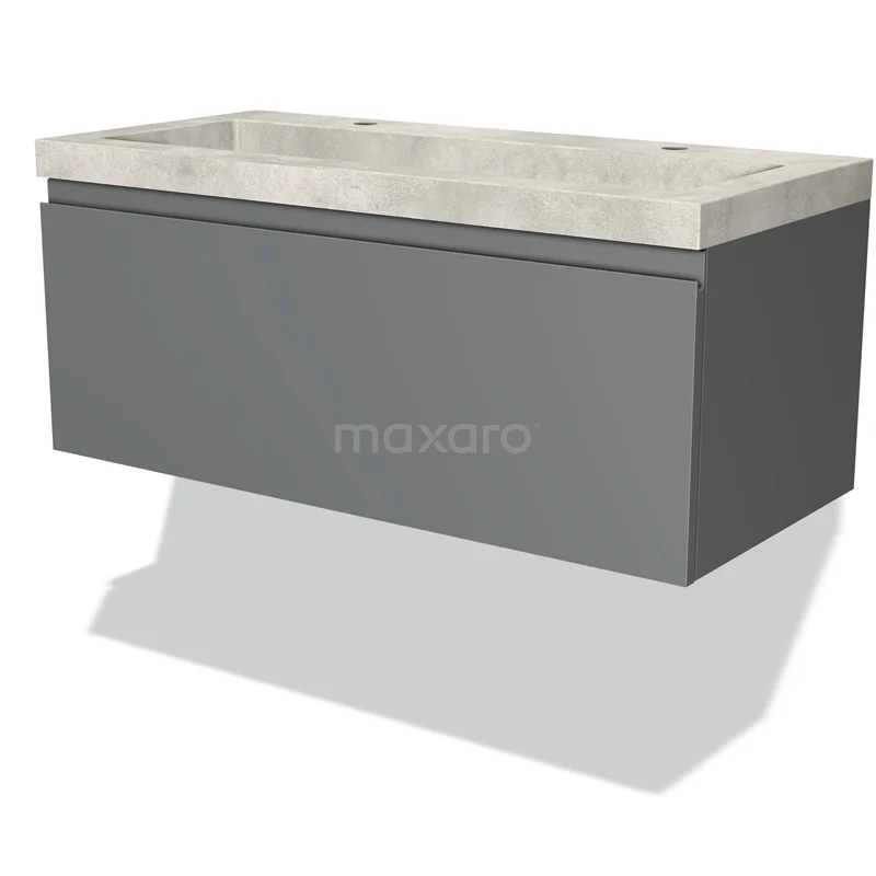 Modulo Waschtische | 100 cm Mittelgrau Grifflos front Beton 1 Schublade