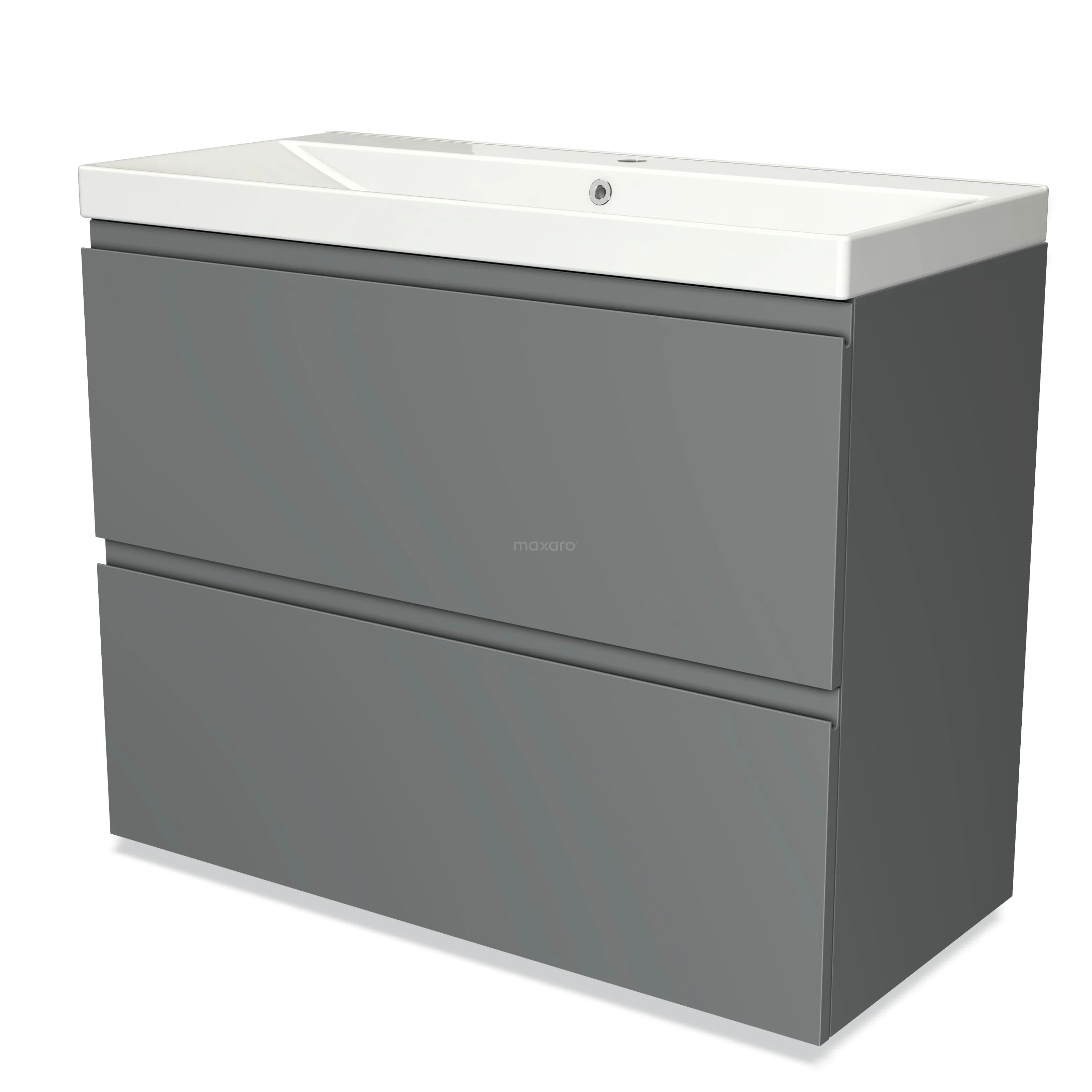Modulo Waschtische | 100 cm Mittelgrau Grifflos front Keramik 2 hohe Schubladen übereinanderliegend