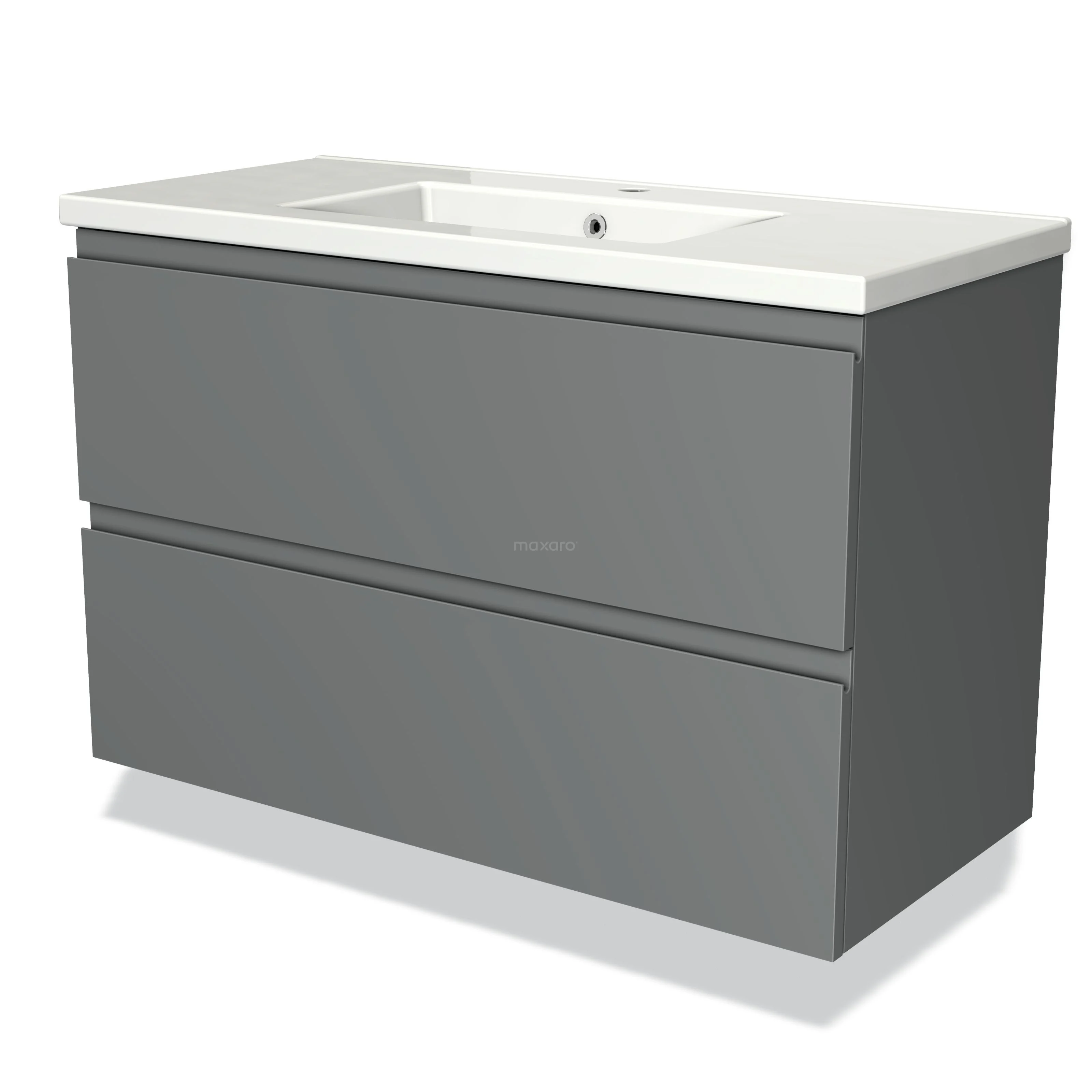 Modulo Waschtische | 100 cm Mittelgrau Grifflos front Keramik 2 übereinanderliegende Schubladen
