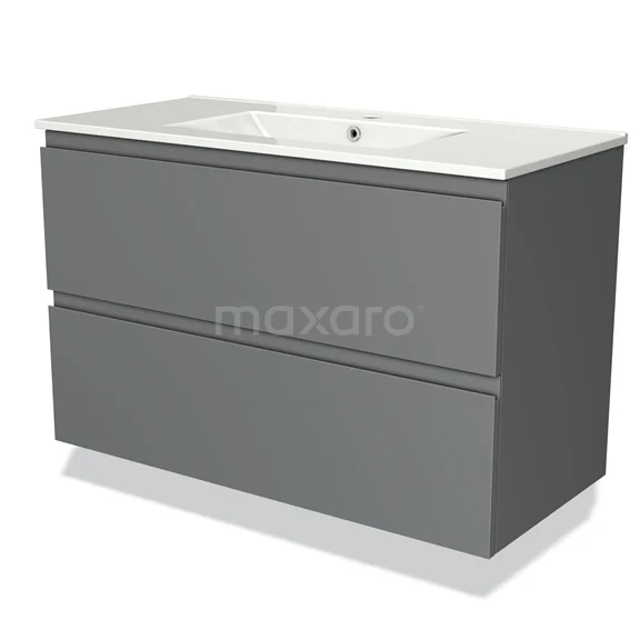 Modulo Waschtische | 100 cm Mittelgrau Grifflos front Keramik 2 übereinanderliegende Schubladen