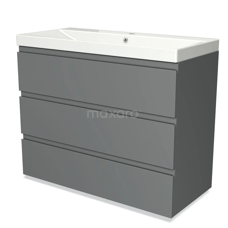Modulo Waschtische | 100 cm Mittelgrau Grifflos front Keramik 3 Schubladen