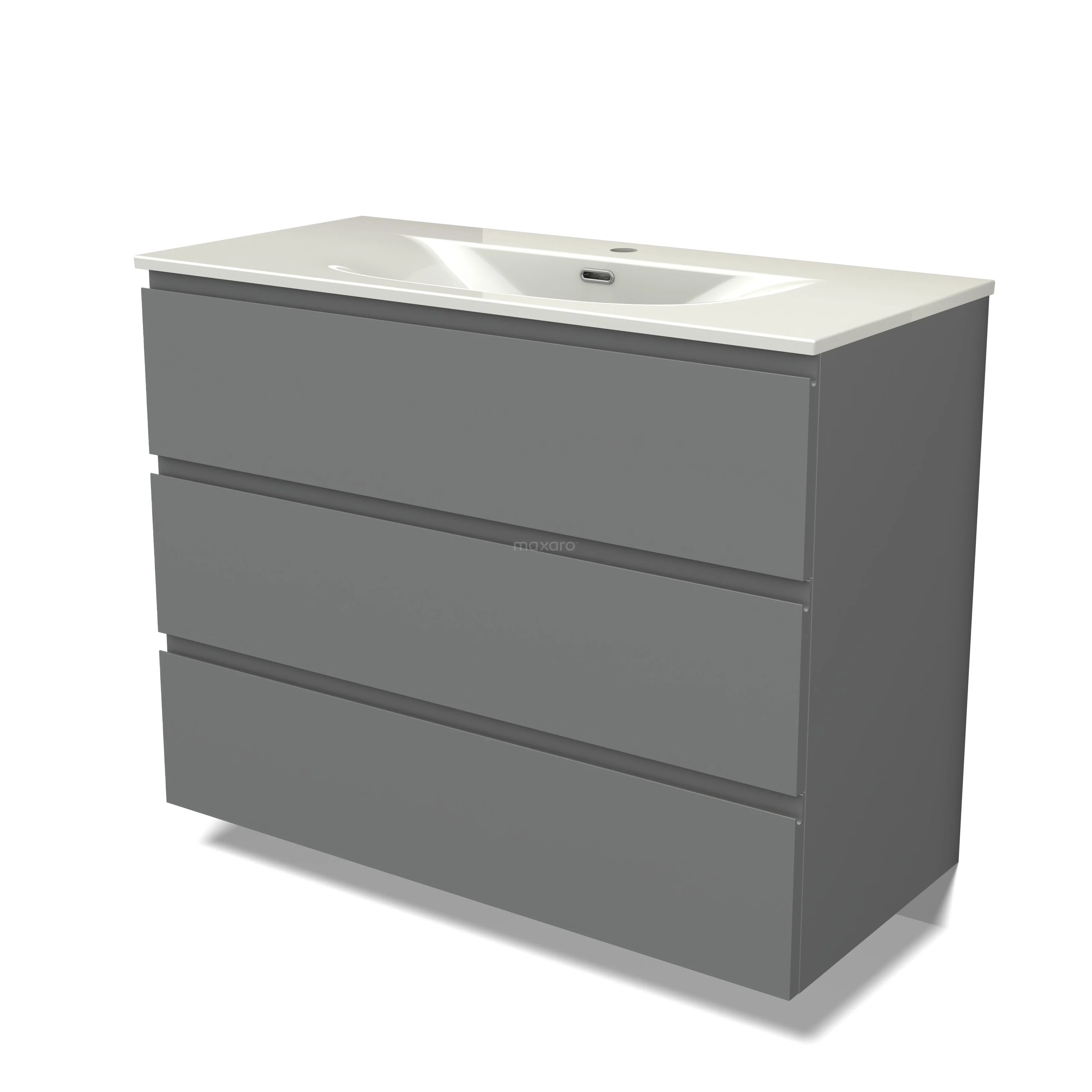 Modulo Waschtische | 100 cm Mittelgrau Grifflos front Keramik 3 Schubladen