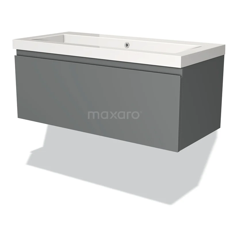 Modulo Waschtische | 100 cm Mittelgrau Grifflos front Mineralguss 1 Schublade