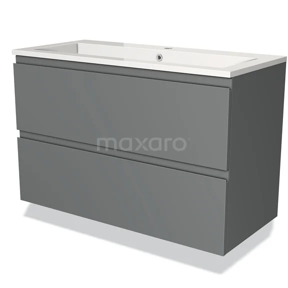 Modulo Waschtische | 100 cm Mittelgrau Grifflos front Mineralguss 2 übereinanderliegende Schubladen