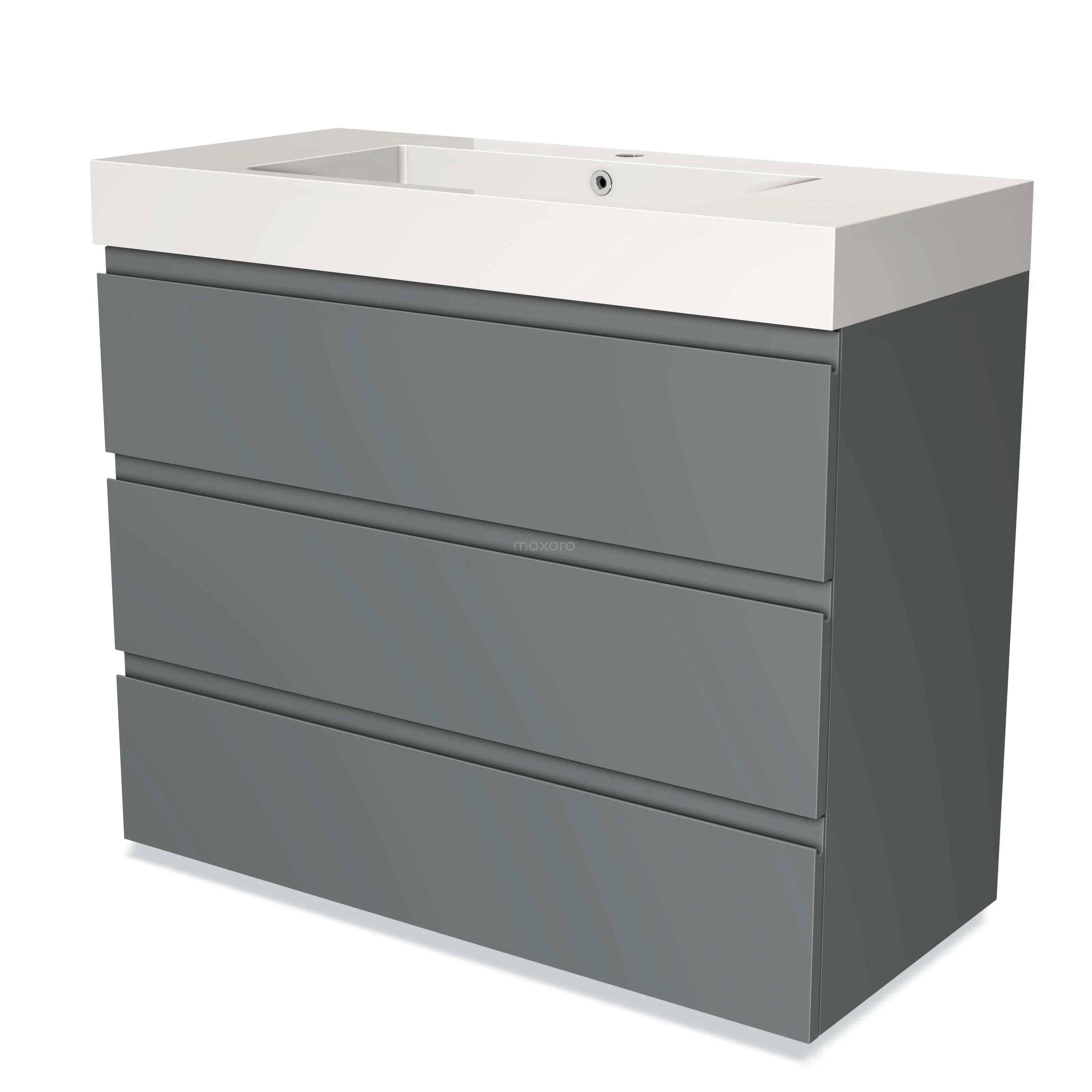 Modulo Waschtische | 100 cm Mittelgrau Grifflos front Mineralguss 3 Schubladen