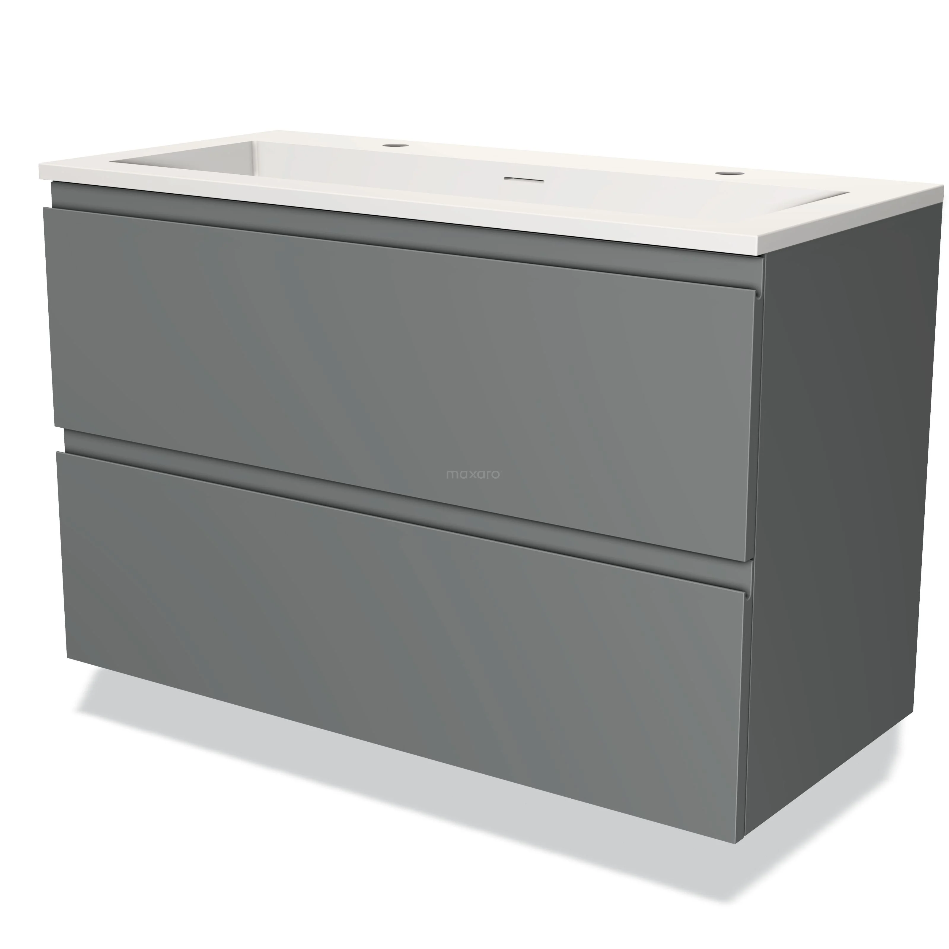 Modulo Waschtische | 100 cm Mittelgrau Grifflos front Solid Surface 2 übereinanderliegende Schubladen