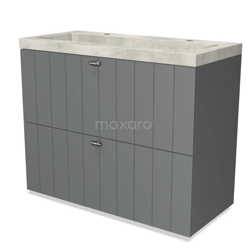 Modulo Waschtische | 100 cm Mittelgrau Lamelle front Beton 2 hohe Schubladen übereinanderliegend