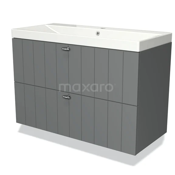 Modulo Waschtische | 100 cm Mittelgrau Lamelle front Keramik 2 übereinanderliegende Schubladen