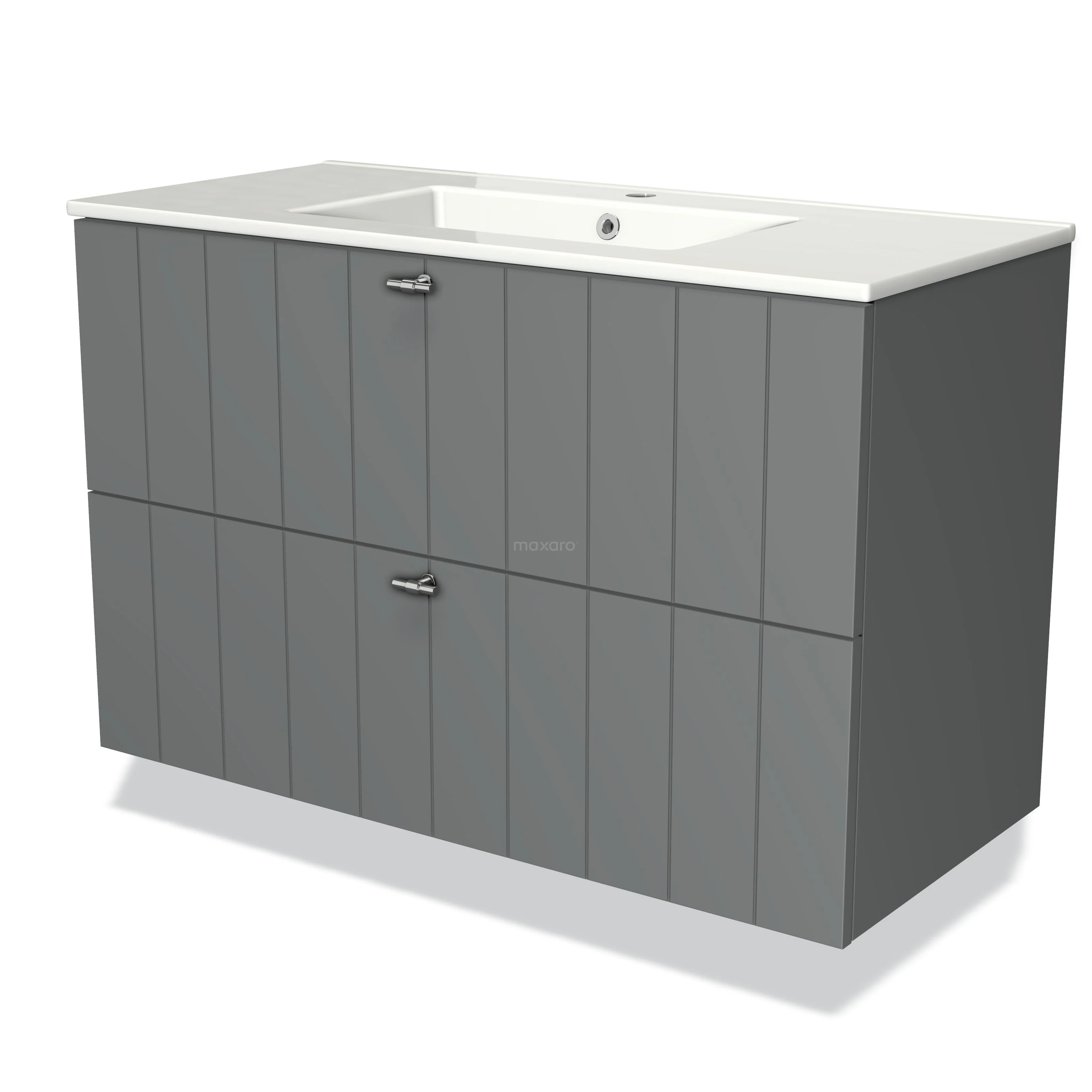 Modulo Waschtische | 100 cm Mittelgrau Lamelle front Keramik 2 übereinanderliegende Schubladen
