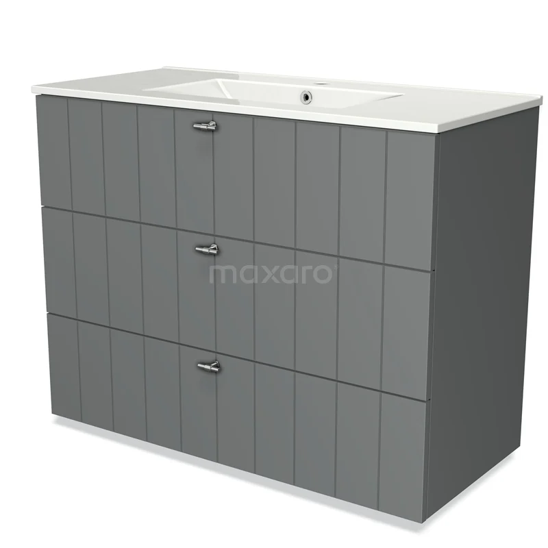 Modulo Waschtische | 100 cm Mittelgrau Lamelle front Keramik 3 Schubladen