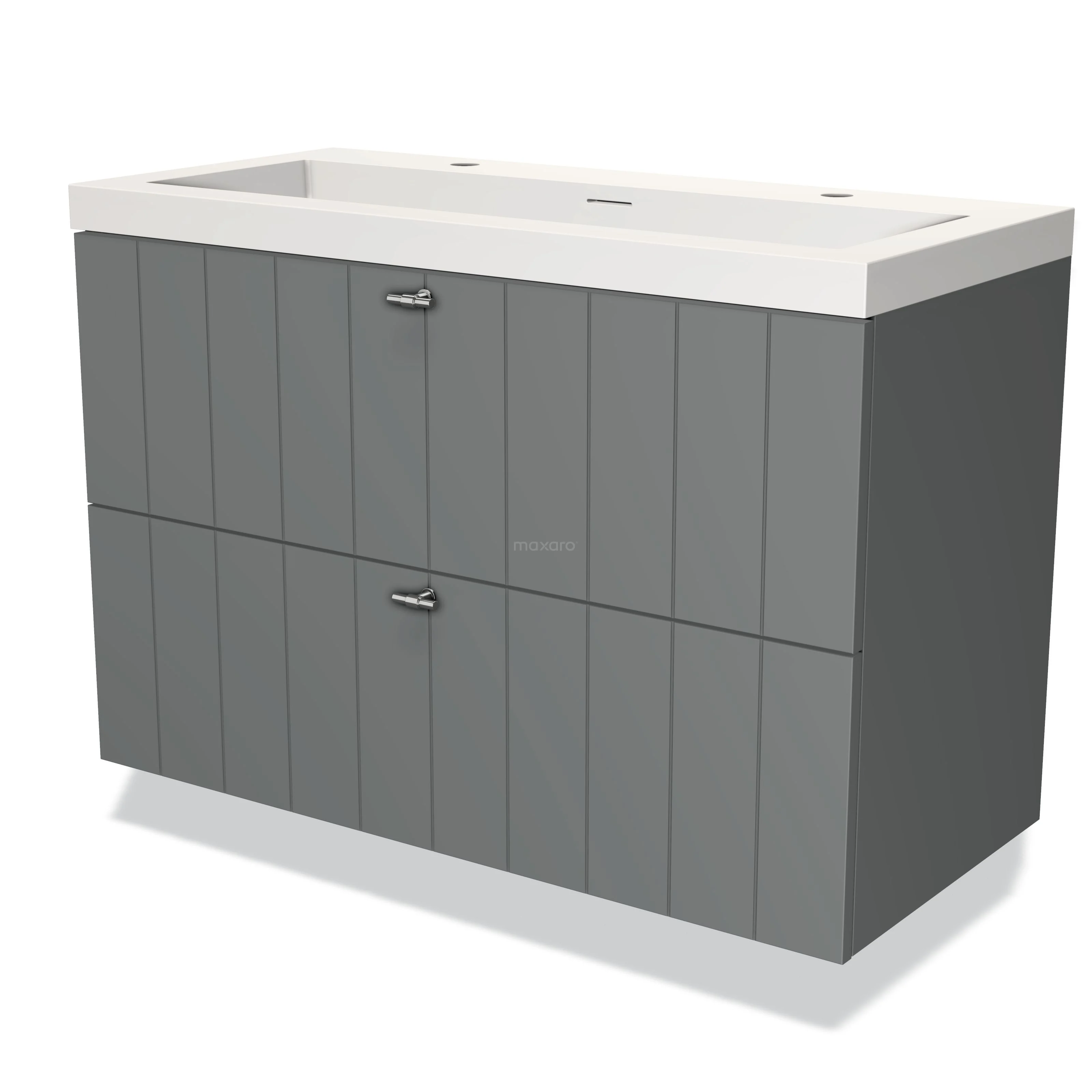 Modulo Waschtische | 100 cm Mittelgrau Lamelle front Solid Surface 2 übereinanderliegende Schubladen