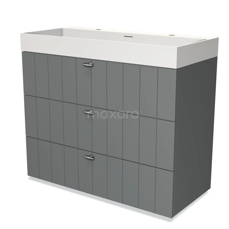 Modulo Waschtische | 100 cm Mittelgrau Lamelle front Solid Surface 3 Schubladen
