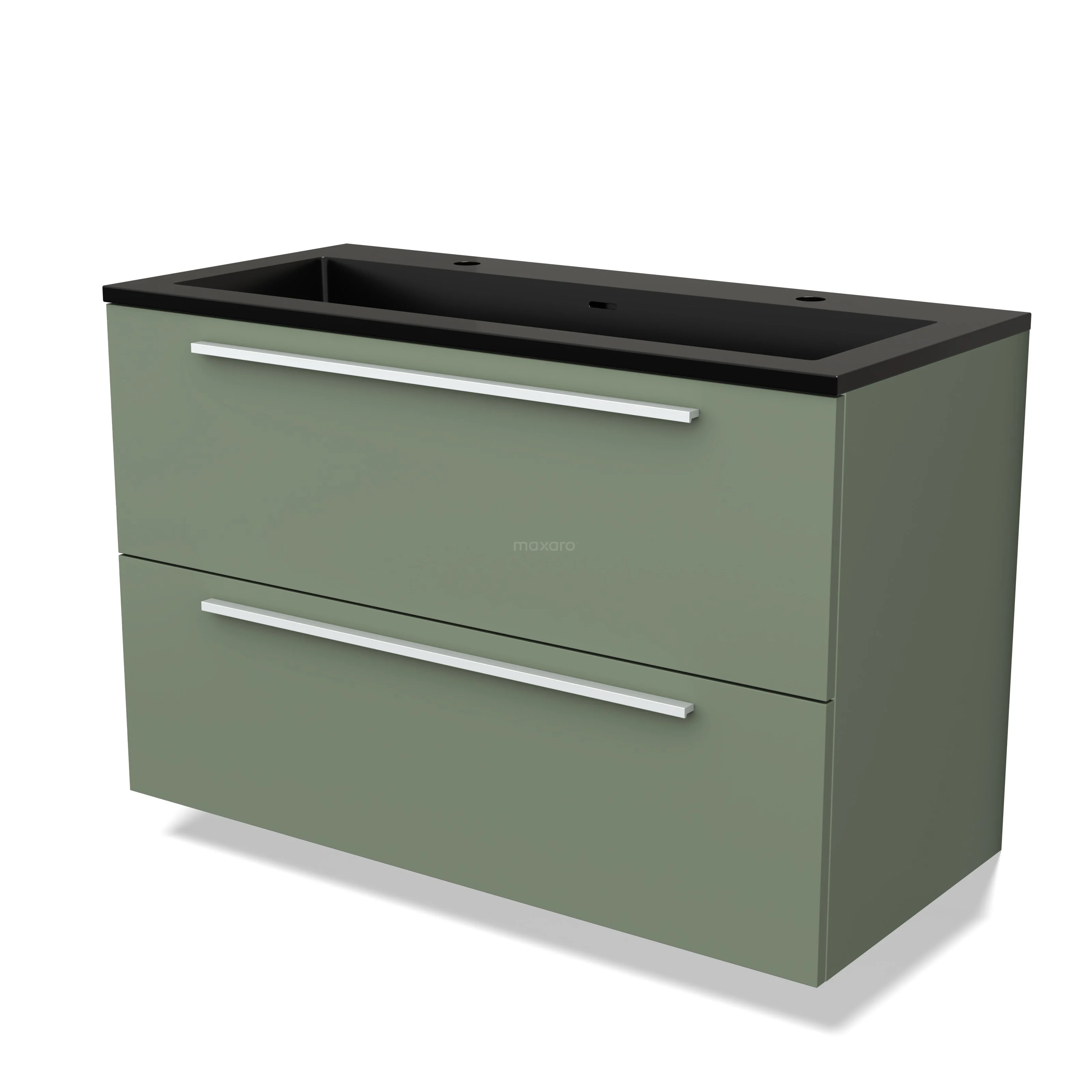Modulo Waschtische | 100 cm Salbeigrün Flach front Quarz 2 übereinanderliegende Schubladen