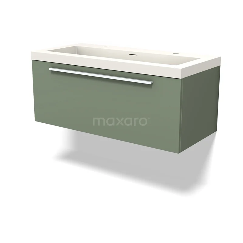 Modulo Waschtische | 100 cm Salbeigrün Flach front Solid Surface 1 Schublade