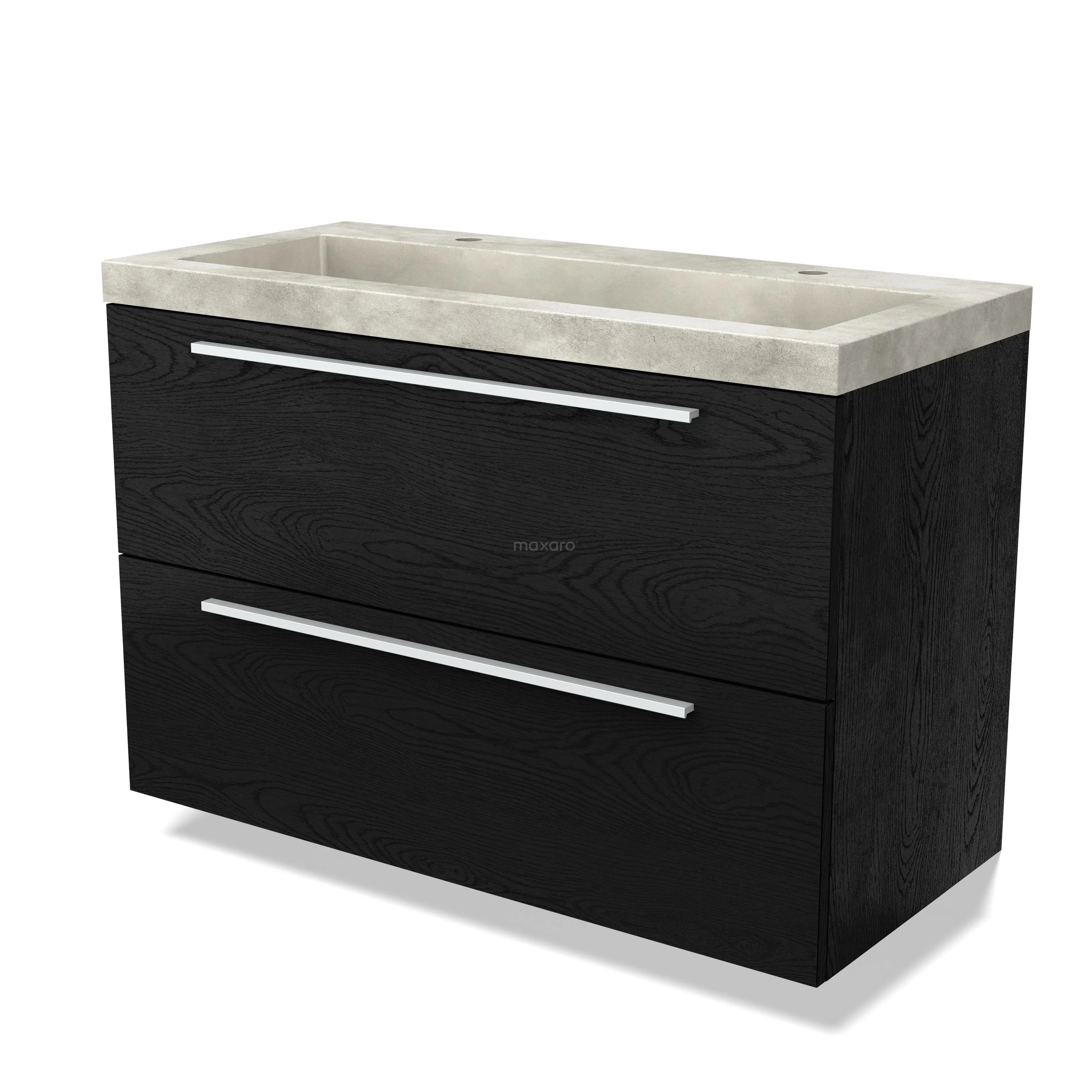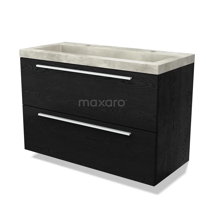 Modulo Waschtische | 100 cm Schwarze Eiche Flach front Beton 2 übereinanderliegende Schubladen