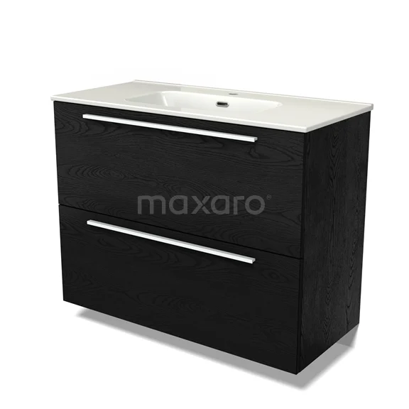 Modulo Waschtische | 100 cm Schwarze Eiche Flach front Keramik 2 hohe Schubladen übereinanderliegend