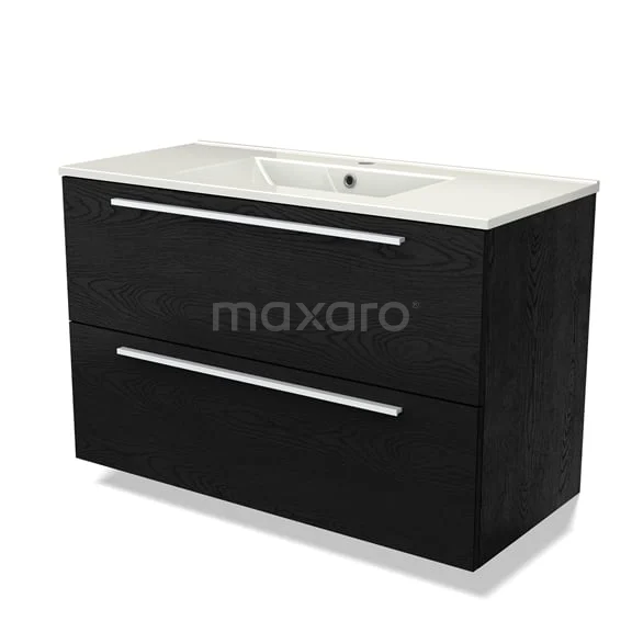 Modulo Waschtische | 100 cm Schwarze Eiche Flach front Keramik 2 übereinanderliegende Schubladen