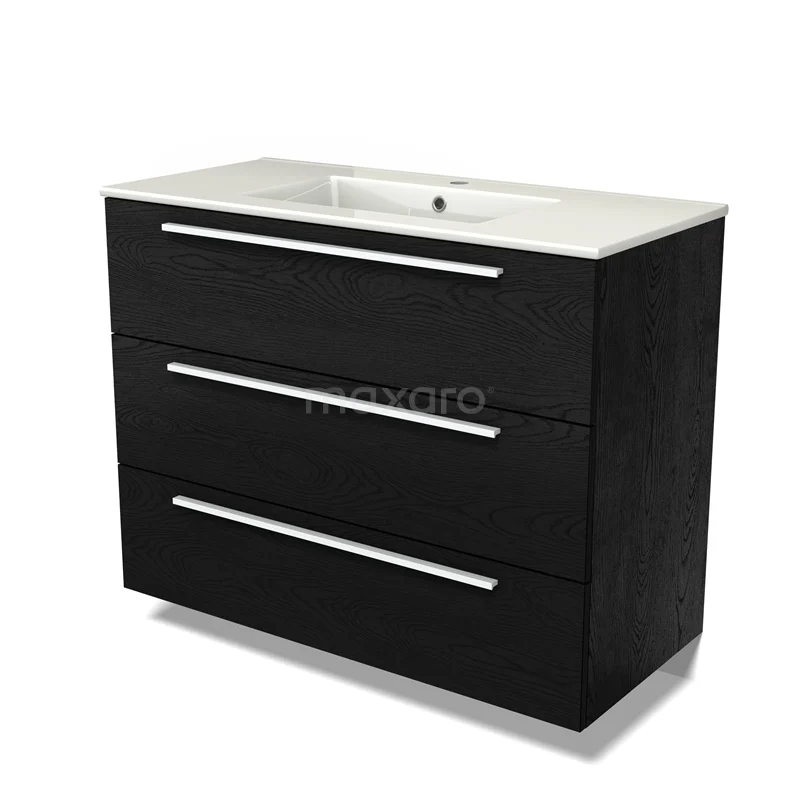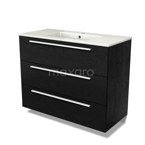 Modulo Waschtische | 100 cm Schwarze Eiche Flach front Keramik 3 Schubladen